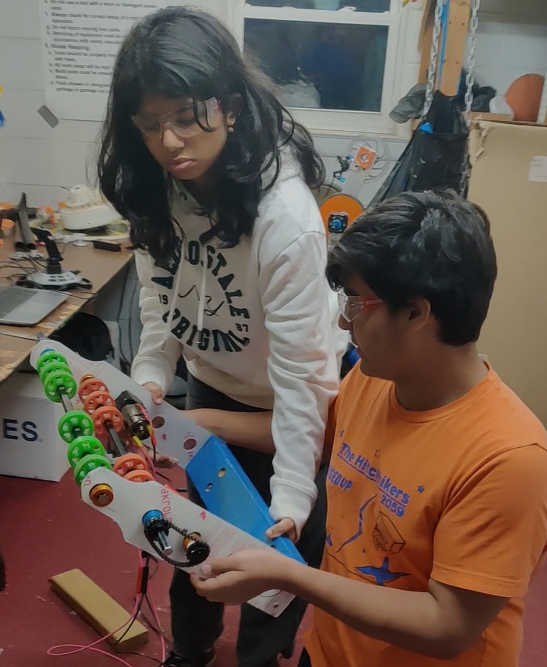This week, we designed an intake and shooter prototype, and got a first draft of our robot created in CAD. Something we found helpful was watching a lot of Robot in 3 Days videos for inspiration on our design, and planning everything out, even just making a basic sketch, before starting development on a prototype.